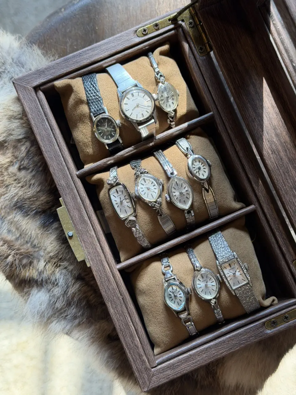 • 年代:1950年後半~1960年前半がメイン今の時計にはない「色気」がある手巻きの腕時計。機械式の時計、でもアクセサリーとして使用も出来、近くで見た人だけが気付く大人の色気です!