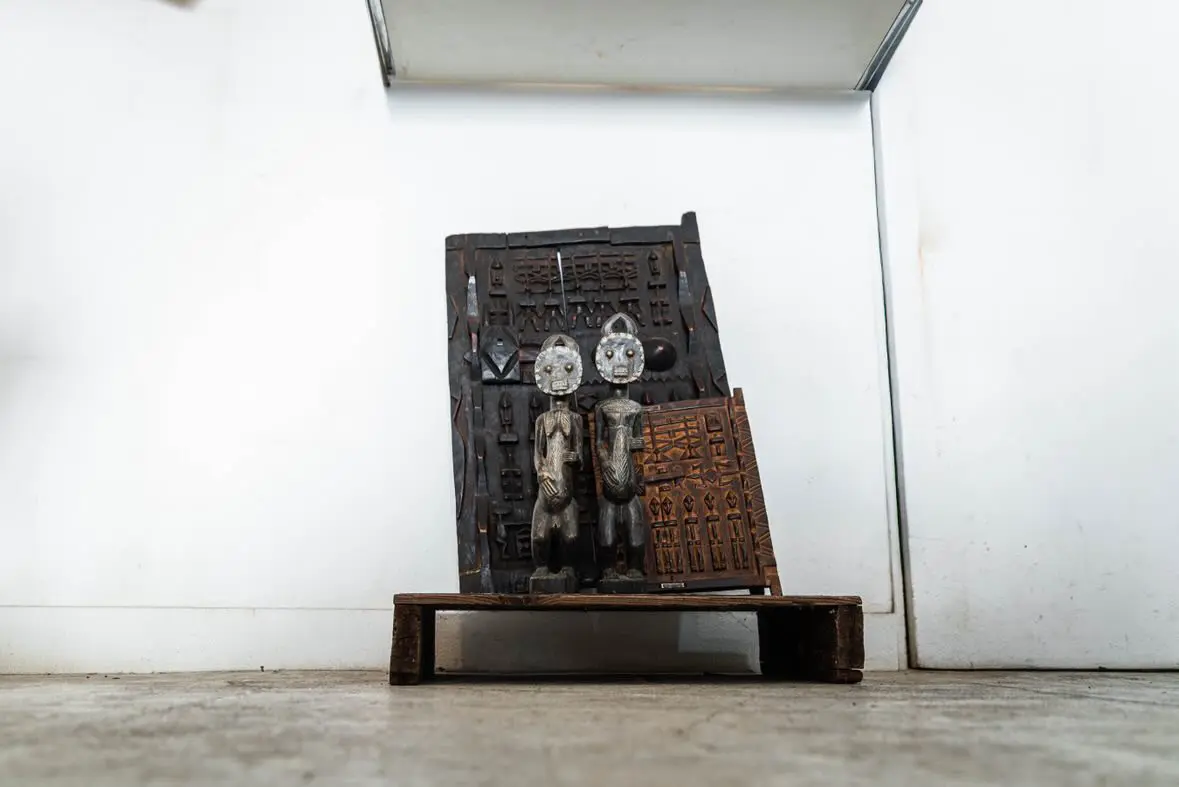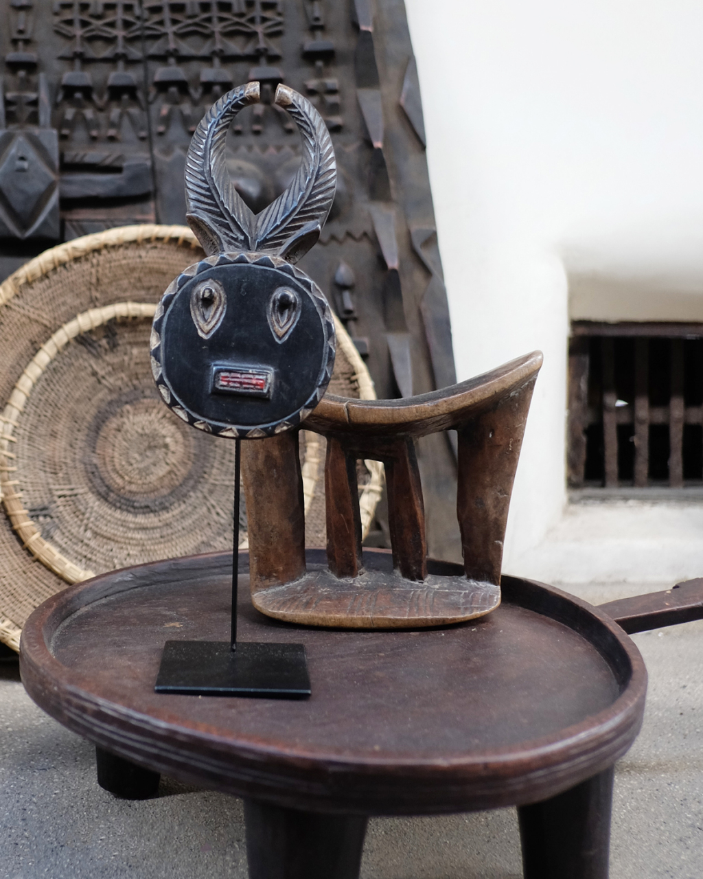 TOP 店舗一覧 セヌフォ堂 104 セヌフォ堂 雑貨・家具・食器 4/17(金)4/18(土)4/19(日) エチオピアからやって来た木の枕。(1900年代)エチオピアでは遊牧民の男性達が結った髪型を崩さないように、この枕を持ち歩いて使います。地域や部族によっていくつかのスタイルがあります。枕としてはオススメできませんが、オブジェとして飾るのはとってもオススメです◎ 西アフリカ・マリの中央部バンディアガラ山地に住むドゴン族に伝わる手彫りの木扉。(1900年代)住居や穀物庫などに使う小さな窓扉で、換気用の扉として使われてきました。表面には災いから屋内を守るための精霊や祖先を象徴する特別な幾何文様の彫り物が施されています。 「刻まれた”手の痕跡”を繋いでいく」をコンセプトに、主にアフリカで生まれた暮らしの”道具”を、新たな使い手に繋げています。 暮らしの中で培われ、個性が溢れる唯一無二の一品に出会ってください。 senufo_africanstool 決済方法:現金,PayPay senufo_africanstool 決済方法:現金,PayPay 前のページに戻る