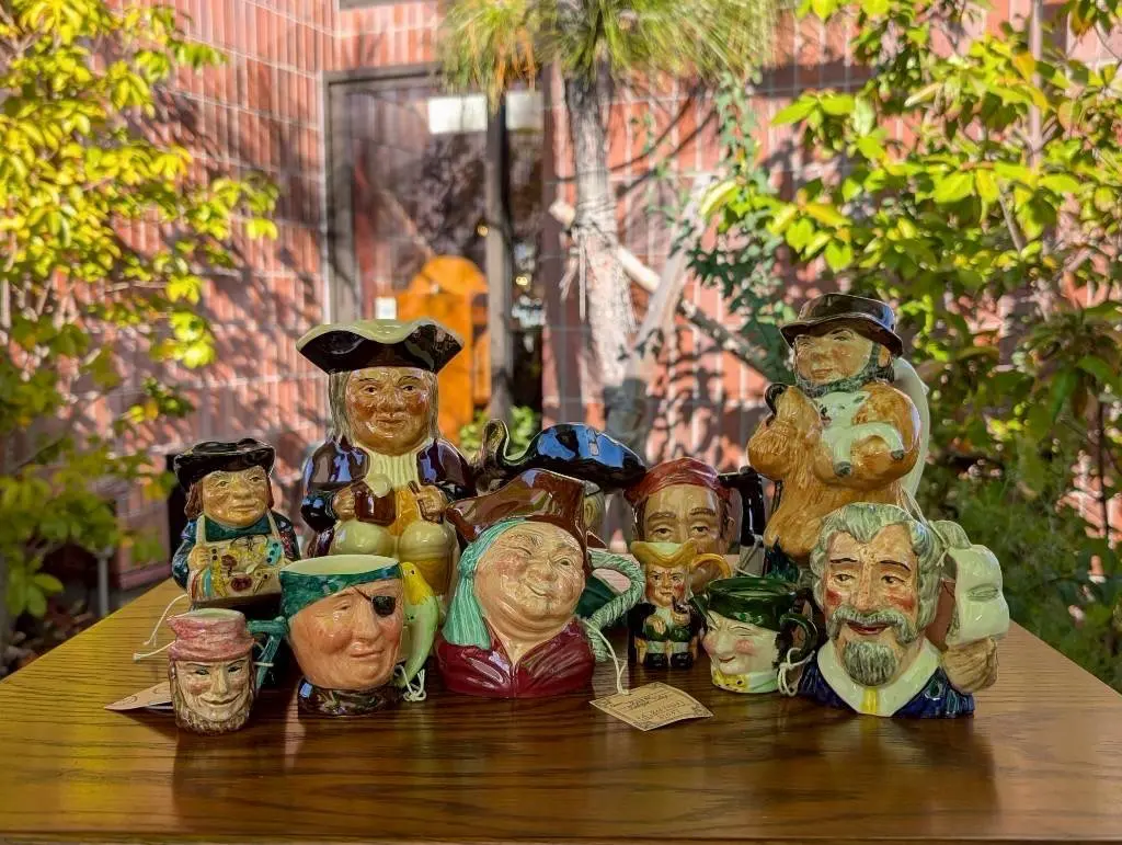 《Toby Jug(トビージャグ)》18世紀からイギリスでつくられているビールジャグ。モデルとなったとされる人物が2人いて、そのどちらも名前が『Toby(トビー)』で、その上、伝説の大酒のみ…。笑そんな彼らにちなんで、Toby Jug(トビージャグ)と呼ばれるように…。笑当時のイギリスで大流行し、ジャグやミルクピッチャーなどもつくられるようになりました。その後、シャーロックホームズやエルビスプレスリー、小説【宝島】の登場人物などを模ったトビージャグを次々につくりだし、今や世界中のコレクターの心を鷲掴みにしています!!