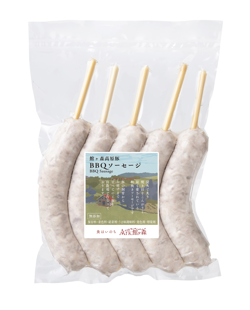 • 牧場人気NO,1のBBQソーセージは自社で育てた豚肉を使い、8ヶ月のお子様から大人の方まで安心して食べられる無添加ソーセージです。1本約15㎝90gと食べ応え抜群!油を使わず肉汁で焼き上げたソーセージはビールとの相性抜群です!