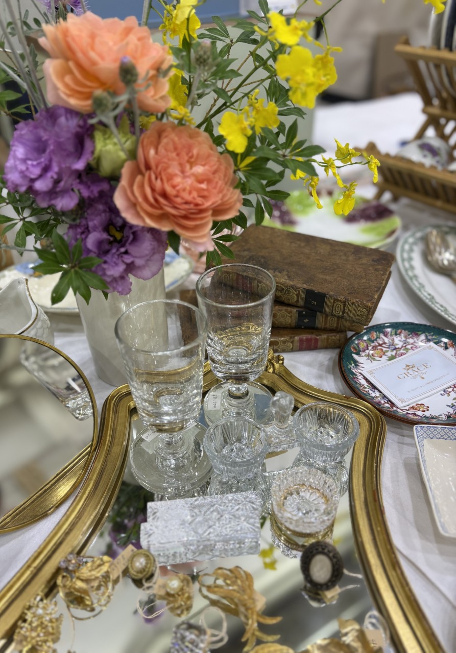 TOP 店舗一覧 GRÂCE 009 GRÂCE 雑貨・家具・食器 4/17(金)4/18(土)4/19(日) 1900年前後~1920年頃。フランス・バドンヴィレ窯によるプレート。シリーズ名「CHAMPAGNE」は葡萄と蔓の文様に由来し、収穫や祝祭を思わせる装飾です。単色グリーンの落ち着いた色合いと余白のある構成が、アンティークの魅力をさりげなく引き立てます。 1856〜1859年頃。 Fismes Vernon Pères, Fils et Co による、サルグミンヌ窯の「ミントン・サルグミンヌ」シリーズへとつながる源流の意匠をもつカップ&ソーサー。19世紀半ば、約10年という短い期間のみ活動した窯の作品で、後年のサルグミンヌに受け継がれるデザインの出発点を実物で味わえる、非常に希少な一点です。 フランスを中心に、店主がヨーロッパ各国(イギリス、ベルギー、オランダ)で買い付けてきた、心ときめくアンティーク食器、雑貨を取り扱っています。是非、手に取ってご覧ください。 grace_bonheure 決済方法:現金,クレジットカード,PayPay,その他電子マネー決済 grace_bonheure 決済方法:現金,クレジットカード,PayPay,その他電子マネー決済 前のページに戻る