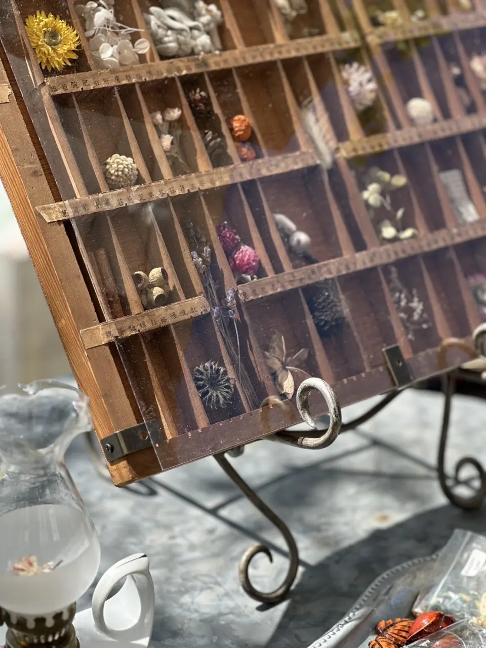 • 活版トレーオリジナルリメイクドライフラワーアレンジでインテリアコーディネート