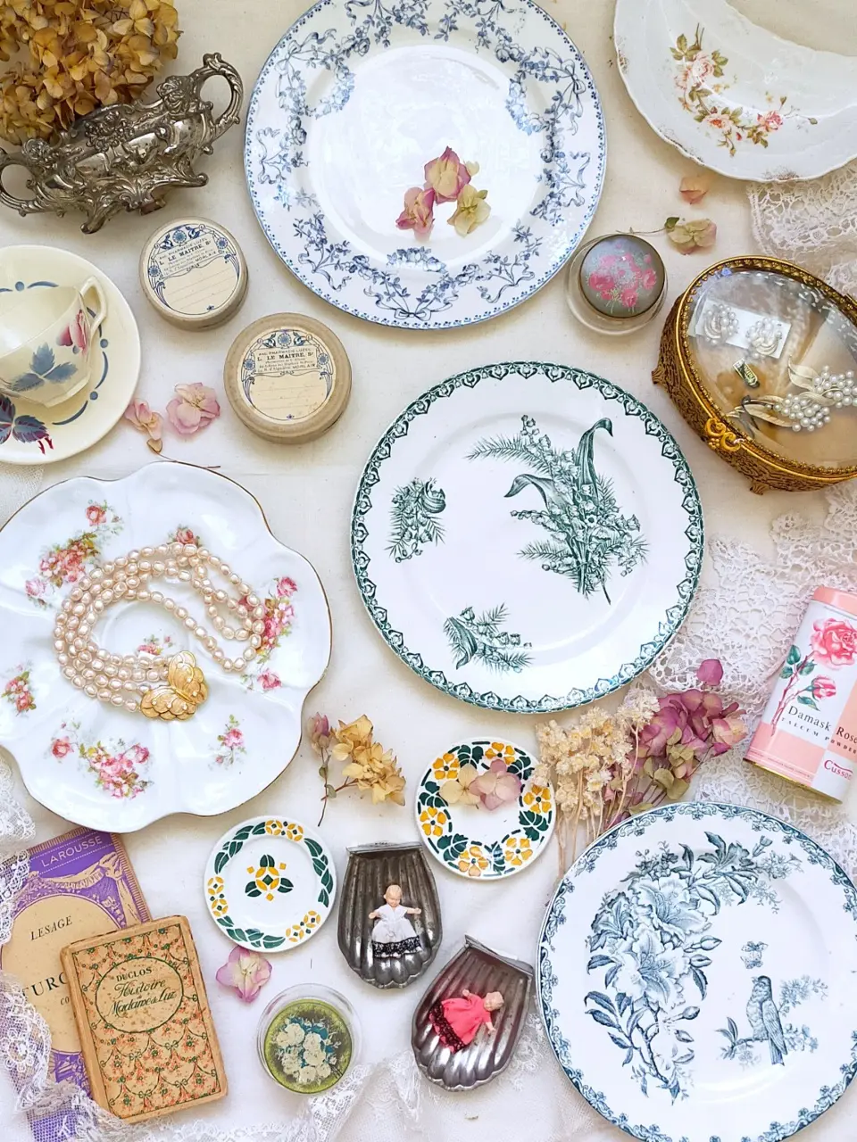 • 1900年~1950年代頃。可憐なお花、植物や鳥などの繊細な模様が素敵なフランスのプレートです。お部屋のディスプレイやジュエリートレイなどにも活用していただけます。
